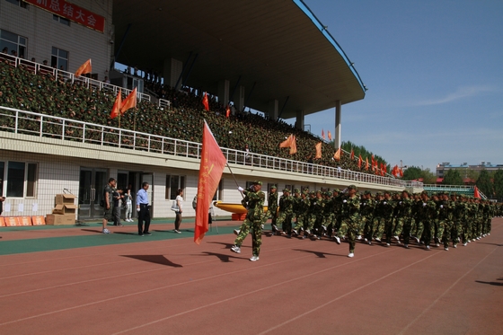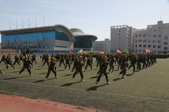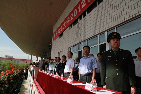 5月26日上午,我校2012级学生军训总结大会在西区田径场隆重召开。军训团政委、校党委副书记盖元臣,军训团政委、副校长郑喜群,军训团团长、副校长李英杰,承训部队首长、武警齐齐哈尔支队政治部副主任范振海中校等出席大会。大会由军训团参谋长、校武装部部长邵丙军主持。