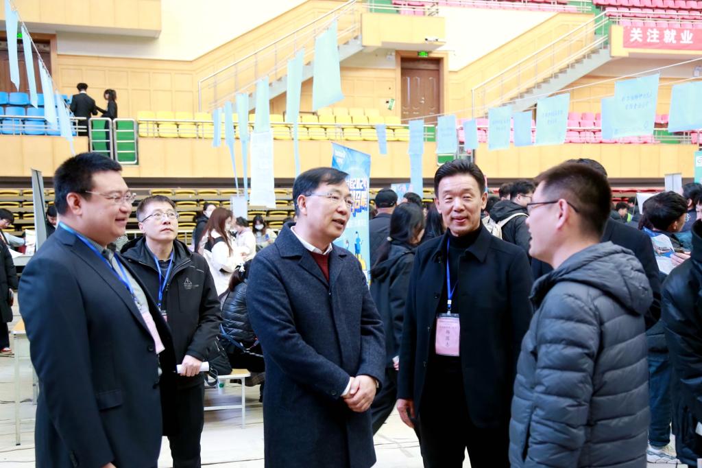 供需见面会现场人头攒动、比肩继踵,郝文斌在招生就业处负责人陪同下,与校招企业代表进行了深入交流,详细了解用人需求及薪资待遇,并要求相关部门要精准对接、细化服务、做好企业回访,以企业人力需求撬动人才培养方案再完善,真正实现校企人才输送无缝对接。相关部门及学院班子成员、辅导员和专业教师也纷纷来到供需见面会现场,详细了解用人单位人才需求和毕业生的求职意向,针对同学们的就业困惑给予一对一帮助和指导。