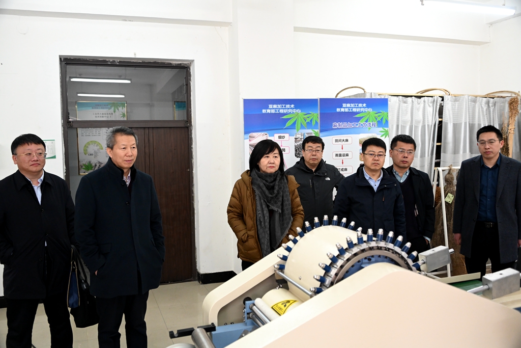 于文秀一行实地考察了国家市场监管技术创新中心(工业大麻)、省农用生物制剂产业化协同创新中心、植物性食品加工技术教育部工程研究中心和寒区麻及制品教育部工程研究中心等科研创新平台,认真听取了相关负责人关于科研创新平台建设运行及科研成果转化等方面情况的介绍,深入了解我校在科技创新、成果转化及社会服务等方面的情况。