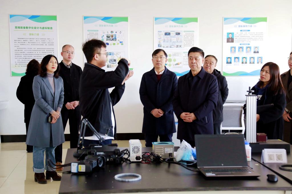 调研组一行深入我校日新大厦“黑龙江省智能制造装备产业化协同创新中心”和“黑龙江省精密制造装备及工业感知工程技术研究中心”,机电工程学院院长徐凤霞详细介绍了相关科研平台建设历程、核心人才梯队及区域科研服务成果,吴志东对所在科研团队服务省4567现代产业体系、推动“环齐齐哈尔大学创新创业生态圈”建设和双创特色党支部的建设与发展进行了具体介绍。