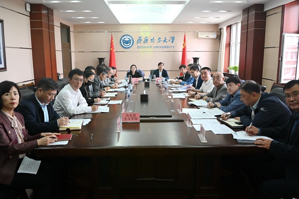 校党委书记丁宏在总结讲话中提出三点工作意见:一是要提高政治站位,不断强化组织领导。要深入学习贯彻习近平总书记重要讲话重要指示精神,牢牢坚持社会主义办学方向,全面贯彻党的教育方针,落实立德树人根本任务,把思想政治工作和思政课建设摆在更加突出的位置,各级党组织要认真履职尽责,全面加强党的领导,始终把思想政治工作刻在心上、抓在手上、扛在肩上。二是要坚持问题导向,探索创新育人路径。要遵循新时代思想政治工作规律,关心关注学生身心发展,充分发挥思想政治理论课的“主渠道”作用,完善课程体系建设,推动思政课程和课程思政协同发展,持续深化“三全育人”工作格局新探索,不断提升学校思政育人工作整体水平。三是要健全育人体系,着力推动内涵式发展。要健全完善以党建为引领的思想政治工作体系,选优建强一支政治强、情怀深、思维新、视野广、自律严、人格正的思政工作队伍和思政课教师队伍,立足学校学科特色优势,聚焦国家战略、学生需求和龙江高质量发展、可持续振兴需要,全面提高育人质量和办学水平,推动学校内涵式高质量发展,努力培养更多让党放心、爱国奉献、担当民族复兴重任的时代新人。
