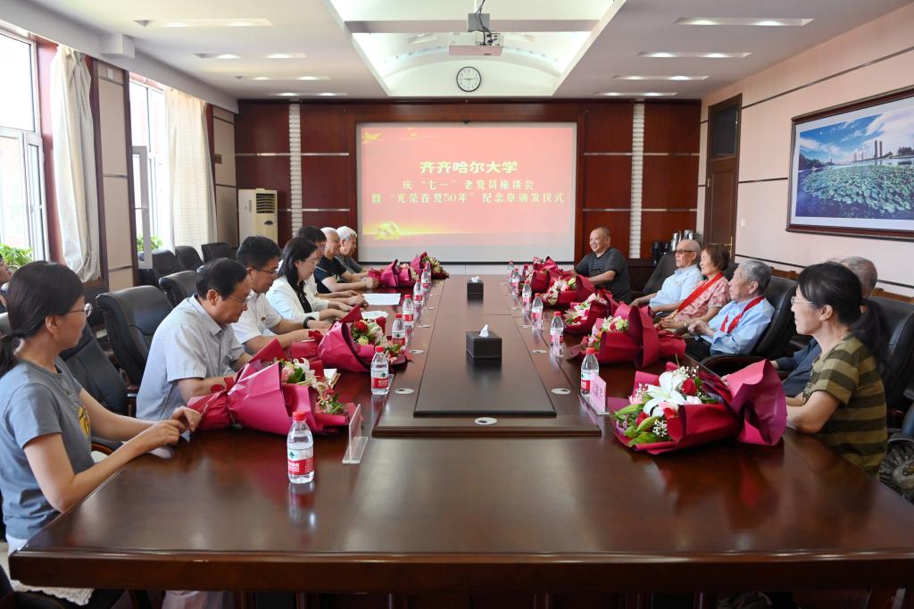 会上,丁宏为“光荣在党50年”纪念章获得者颁发了纪念章。纪念章颁发仪式是对老党员始终对党忠诚、为党奉献的一种肯定,也是对具有50年党龄党员的一次集体致敬,同时也是优良作风和可贵精神的一种传承,鼓舞激励一代代齐大人见贤思齐、感恩奋进。