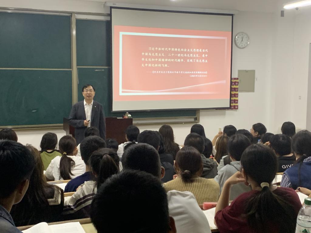 为深入贯彻落实《关于深化新时代学校思想政治理论课改革创新的若干意见》《普通高等学校马克思主义学院建设标准(2023)》《中共齐齐哈尔大学委员会关于加强新时代思想政治理论课改革创新的实施意见》等文件精神,推进校领导讲思政课常态化,进一步提高我校思政课教育教学质量。校长郝文斌教授自2023年以来利用周末和晚课时间,在为本科生和研究生讲授课程的基础上,再次走进思政课课堂,为学校哲学与法学学院2024级新生讲授了大学第一堂思政课。