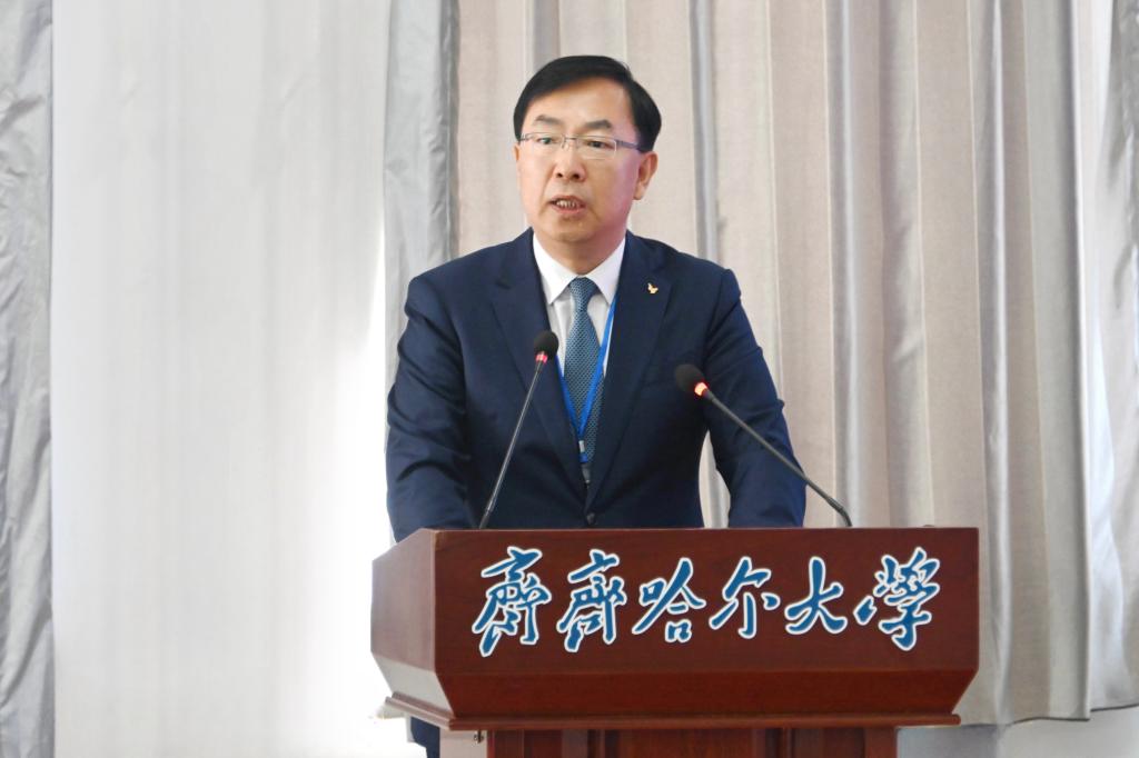 李广平代表联合认证专家组介绍了现场考查基本情况,对学校在师范生培养方面的特色做法和认证专业取得的成绩给予充分肯定。专家组认为,齐齐哈尔大学保持和弘扬了“艰苦奋斗、奉献边疆”的办学传统,坚守师范教育底色,为党和国家培养了一大批优秀教育师资。学校领导高度重视师范类专业认证工作,将其作为提高专业办学质量、深化教育教学改革的有效手段,推进学校师范类专业认证工作有序高效开展。