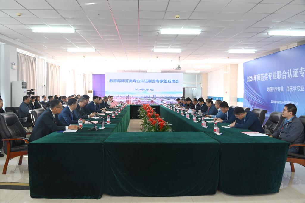 9月14日上午,学校在东区图书馆八楼报告厅召开2024年教育部师范类专业认证联合专家组意见反馈会。专家组联合大组长兼音乐学专业认证专家组组长李广平教授、地理科学专业认证专家组组长张新民教授以及两个师范类专业认证专家组全体成员,我校领导班子成员出席会议,相关职能部门及公共课开课学院负责人、参与认证专业所在学院班子全体成员及参评专业负责人参加会议。会议由李广平主持。