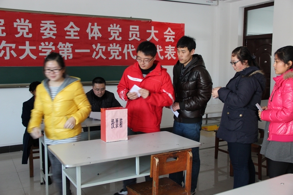 按照《中国共产党齐齐哈尔大学第一次代表大会代表选举工作方案》确定名额及结构比例要求,国际交流学院党委在确定的2名候选人范围内,以无记名投票方式,采取差额选举的办法,正式选举产生1名出席党代会的代表。