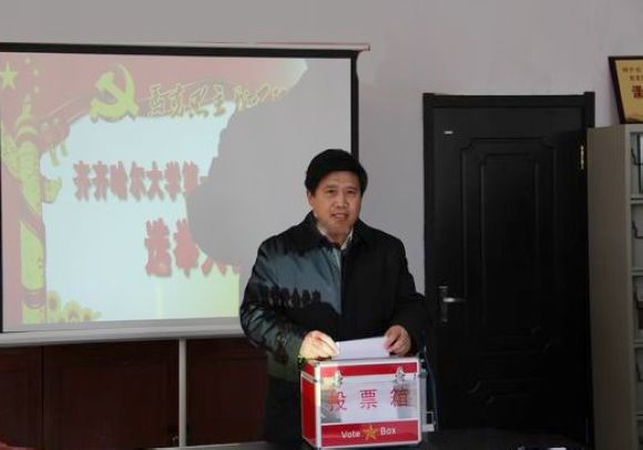 会议由学院党委书记何春歧主持,首先就会议议程及候选人基本情况向与会师生作了简要介绍,副院长于春梅宣读了《中国共产党齐齐哈尔大学第一次代表大会代表的选举工作方案》。并以举手表决的方式分别通过了《选举工作方案》及总监票人、监票人人选,并宣布了党委确定的计票人名单。在5名候选人中以无记名投票方式,差额选举产生了我院出席校第一次党代会代表4人。他们是(以姓氏笔画为序):于春梅王圣祯 何春歧 郑喜群,其中有校领导1名、党政领导干部管理人员1名、专业技术人员2名,其中女代表1名,50岁以下代表3名。