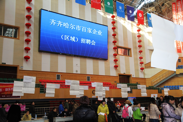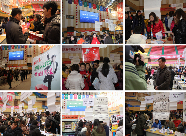 为进一步做好2013届毕业生就业工作,突出“大学人才培养服务社会,特别是为地方经济建设服务”的促就业理念,2012年12月14日(星期五),齐齐哈尔市百家企业(区域)招聘会在体育馆举行。举行来自全市120多家企事业单位,提供岗位近2000多个用工岗位供毕业生双向选择。