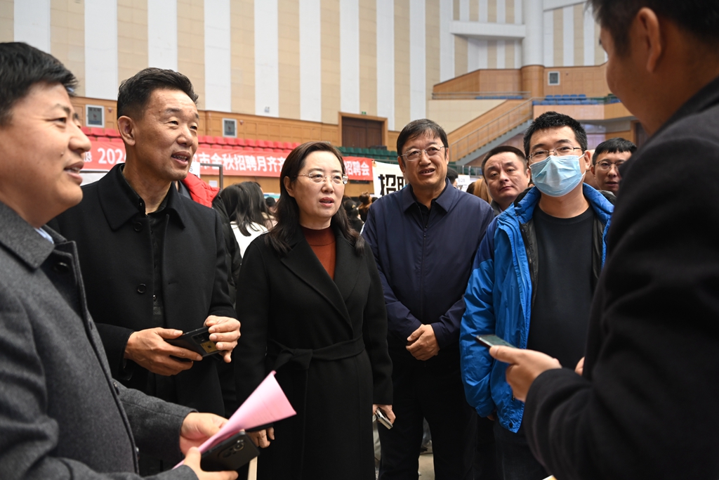 学校党委书记丁宏、副书记张文治来到现场,与滨州市滨城区人社局、齐齐哈尔市人社局、古井集团、黑龙江欣汇龙、山东永鑫能源集团、左思中学、鲁泰纺织等政府部门、用人单位、求职学生及学院领导、教师进行交流。