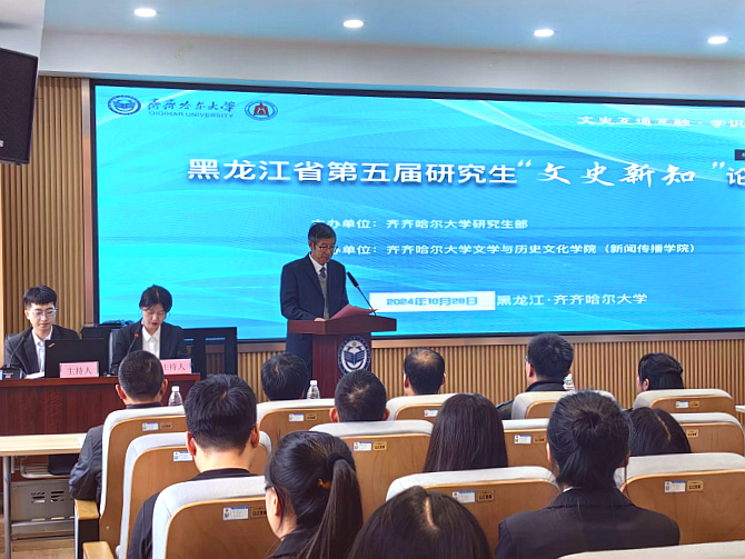 为加强黑龙江省各高校及科研院(所)研究生之间的学术交流,搭建自主探究的平台,开拓研究生科研思路与学识视野,提升研究生创新能力与学术水平,10月26日,由齐齐哈尔大学研究生部主办、文学与历史文化学院(新闻传播学院)承办的黑龙江省第五届研究生“文史新知”论坛在我校举办。本届论坛采取线上与线下相结合的方式,来自省内历史学、中国语言文学、学科教学(语文)、学科教学(历史)等不同学科(领域)的200余名专家、学者、硕士研究生参加了论坛。