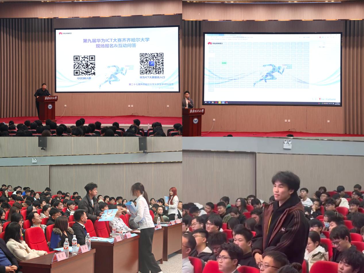 华为ICT大赛是华为公司面向全球大学生举办的年度ICT竞赛,旨在为高校学生提供国际化的竞技和交流平台,提升学生的ICT知识水平和实践能力。此次活动的成功举办,展现了齐大青年学子的创新精神和团队协作能力,进一步推动了我校与华为公司的深度合作与交流。我校将持续优化学术科技节活动的形式,不断丰富活动的载体,推动学术科技活动的深入开展,为培养更多具有创新精神和实践能力的高素质人才贡献力量。