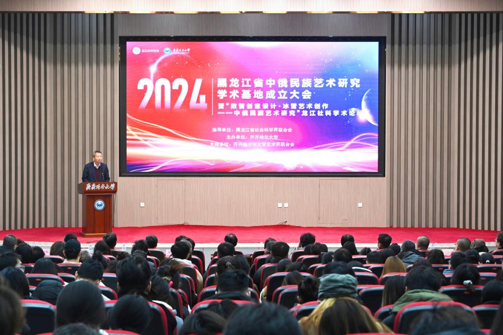 11月5日上午,黑龙江省中俄民族艺术研究学术交流基地成立大会暨“数智创意设计·冰雪艺术创作——中俄民族艺术研究”龙江社科学术论坛在我校日新大厦四楼报告厅召开。会议由省社科联指导,齐齐哈尔大学主办,中俄民族艺术研究学术交流基地和我校美术与艺术设计学院承办。我校党委书记丁宏,校长、党委副书记郝文斌出席,省社科联秘书长曹妍、学会工作部部长马琳,齐齐哈尔市社科联主席李维杰、文联主席朱宏宇,哈尔滨师范大学美术学院院长孟宪德、国际美术学院副院长牟克以及我校相关职能部门及学院负责人参加会议。成立大会由我校副校长、党委常委丛喜权主持。