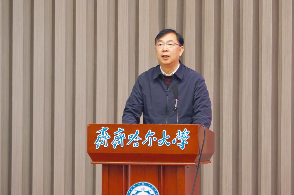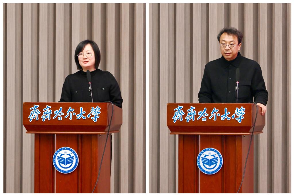 郝文斌在致词中指出,近年来,齐齐哈尔大学立足服务我省“4567”现代化产业体系建设,加强有组织科研顶层设计,以科技创新助力发展新质生产力,在推动发展生物经济、创意设计等产业方面取得代表性成果,为龙江振兴发展提供了人才与技术支持。“省中俄民族艺术研究学术交流基地”落户我校,是省社科联对我校的信任和支持,是对我校中俄民族艺术研究相关学科建设的充分肯定,对于提升我校民族学术研究、学术交流层次,扩大学术影响力、推动相关学科发展具有重要意义。齐齐哈尔大学将认真贯彻许勤书记调研我校时对校地共建齐齐哈尔创意设计港有关指示要求,落实《黑龙江省创意设计产业发展专项规划(2022-2030年)》《黑龙江省支持创意设计产业发展若干政策措施》等文件精神,在省社科联指导下,持续加强同省内兄弟高校和齐齐哈尔市社科联、市文联以及省市艺术设计研究创作力量的联系协作,有力有效推进“环齐齐哈尔大学创新创业生态圈”建设,助力我省创意设计产业发展,积极参与齐齐哈尔创意设计港建设,为丰富跨境文化艺术研究成果,助力向北开放新高地建设、龙江高质量发展、可持续振兴贡献智慧和力量。