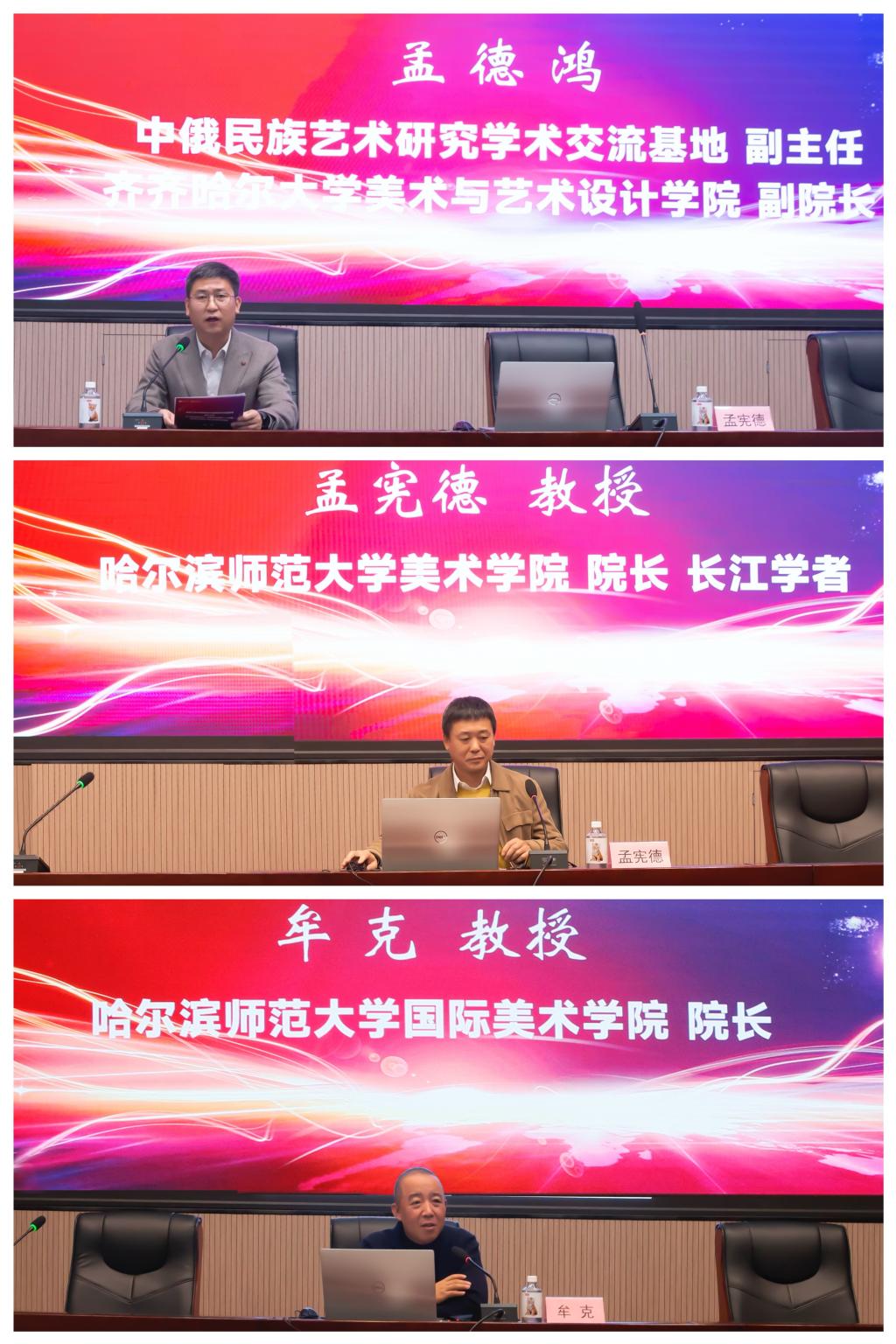 成立大会结束后,省中俄民族艺术研究学术交流基地副主任、我校美术与艺术设计学院副院长孟德鸿主持“数智创意设计·冰雪艺术创作——中俄民族艺术研究”龙江社科学术论坛。孟宪德教授、牟克教授分别作了题为《绘画艺术创作的几点因素》《中俄美术发展现状》的学术讲座。此次学术讲座作为龙江社科学术论坛活动之一,是省社科联贯彻落实党的二十届三中全会精神、聚焦新质生产力研究、赋能龙江高质量发展的重点学术活动。讲座在中俄民族艺术研究的框架下,从不同角度研究了诠释了文化艺术研究的新路径,开启了数智创意设计、冰雪艺术创作的新篇章,为发掘中俄民族艺术的精华,推进两国文化艺术的发展与繁荣贡献了社科力量。