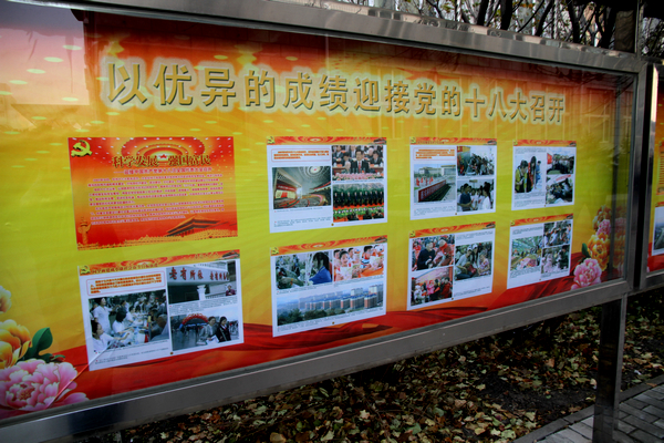 营造氛围。各单位在校园里积极营造喜迎十八大召开的浓厚氛围,校园网、校报、广播站开辟“庆祝十八大、迎接党代会”学习专栏及专题节目。通过宣传栏、电子显示屏、宣传橱窗、展板等多种载体进行宣传,集中展示党的十六大以来和齐齐哈尔大学合校十六年来取得的辉煌成绩,为党的十八大和我校党代会胜利召开营造团结奋进、昂扬向上的浓厚舆论氛围。校园网链接了醒目鲜明的“喜迎党的十八大”专题,供师生点击浏览、专题学习。