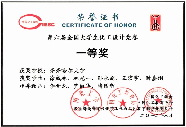 在学校有关部处的大力支持下,我校共组建了三十余支代表队参加了2012年度化工设计竞赛。我校参赛队在本次大赛中共取得全国一等奖1个、二等奖1个、三等奖3个的好成绩。这是我校代表队自2009年以来连续第四次入围全国总决赛,充分展示了我校学生坚实的专业能力和拼搏进取、执着自信的优秀综合素质,同时也检验了我校在化工工程设计方面的教学成果,进一步扩大了我校的知名度。