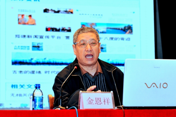 金恩祥少将长期从事国防战略战役理论研究和实践工作,潜心治学、厚积薄发,是国防战略特别是东北亚安全问题专家,在军内外享有很高声誉。在历时两个小时的报告中,他结合当前国际国内形势,围绕我国海上安全问题,从“中国面向的海洋——拓展发展利益和安全屏障的舞台”、“中国面临的海疆——充满历史争端和现实威胁的挑战”、“中国面对的海防——需要战略谋划和应急处突的思考”等三个方面为齐齐哈尔地区高校师生们上了一堂精彩生动的国防教育课。他从我国与周边国家的海域争议事件讲起,解释了蓝色国土的科学内涵,从历史传承、地理特点、自然资源、战略意义等角度阐述了这些海域为我国固有领海的事实,以及周边多国对其非法掠夺的原因。在剖析我国海上安全的严峻局势基础上,他认为,民族复兴要增强海洋意识、领海主权要强调海上战略、和平发展要壮大海军力量、维护海权要整合海防手段。整场报告,事例生动,图片丰富,数据翔实,深入浅出,讲解充满激情,极大地激发了师生们的爱国热情和学习兴趣,全场秩序井然,掌声雷动。