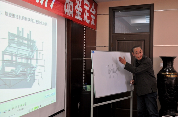 我校原校长唱江华教授向鉴定委员会汇报了“CJK-Ⅱ型数控纸箱隔板自动插接机”性能指标及市场化前景。