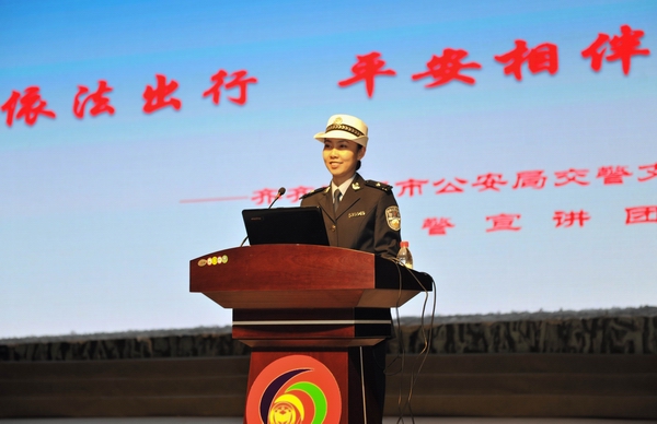 会后,女警宣讲团还向师生发放了交通安全宣传单并与师生以图板形式向师生宣讲交通安全知识。