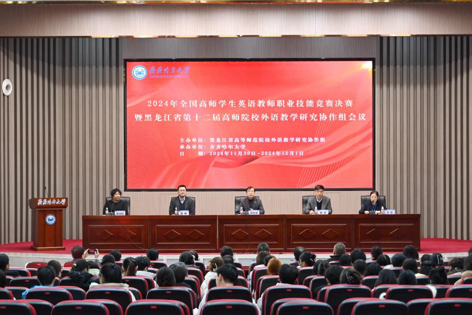 11月30日至12月1日,2024年全国高师学生英语教师职业技能竞赛决赛暨第十二届黑龙江省高师院校外语教学研究协作组会议在我校成功举办。此次会议由黑龙江省高等师范院校外语教学研究协作组主办,我校承办,汇聚了来自哈尔滨师范大学、牡丹江师范学院等省内多所院校的近十几位英语师范教育领域专家以及12所院校的参赛选手和带队教师参加。