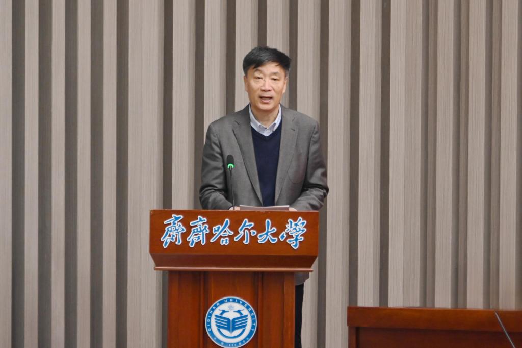 郝文斌代表学校,向大赛及会议的召开表示热烈祝贺,并向各位专家和来宾致以诚挚的欢迎。他介绍了学校七十余载的办学历程与取得的成就以及师范类专业近年来的发展情况。他强调,此次会议的成功举办,不仅是展示高师学生英语教师职业技能、检验教学成果的重要平台,更是推动黑龙江省乃至全国师范教育改革与发展、加强教育交流与合作的重要契机。学校将借此契机,认真聆听并汲取各位专家、学者的宝贵意见,不断深化教育教学改革,进一步推动英语师范类教育的创新发展,努力提升师范类专业的整体办学水平和人才培养质量。