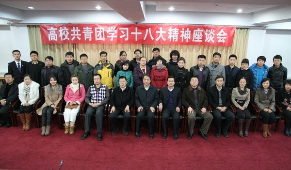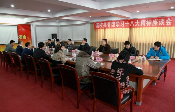 校团委书记李秀梅就我校团学组织和团员青年学习党的十八大整体情况作了简要汇报。她说,今年全校团的工作围绕突出“一条主线”,即:团结带领全校团员青年以优异成绩向党的十八大献礼。在三大主题教育活动稳步推进的同时,特别是在党的十八大召开前夕,又适时地启动了“青春献给党·喜迎十八大”系列教育活动。一是以寝室团小组、班级团支部、学生会团支部、学生社团团支部等为单位,认真组织收听、收看了党的十八大盛况;二是依托各基层团支部、校院两级学生会、校院两级学生社团,系列教育活动八项内容同步推进;三是坚持党建带团建,邀请校党委十八大精神宣讲团成员走进大学生骨干培养学校,邀请十八大代表王淑媛讲述参加十八大的亲身感受;四是积极发挥校园广播、校园网络特别是团支部微博的新媒体作用,已在校园内迅速形成人人关注、学习十八大的热潮。她表示,全校团学干部一定会在十八大精神的指引下,在校党委的正确领导下,按照上级团组织的要求,努力工作,不负重托,团结带领全校团员青年为学校的发展建设,为社会进步和国家富强作出应有的贡献。