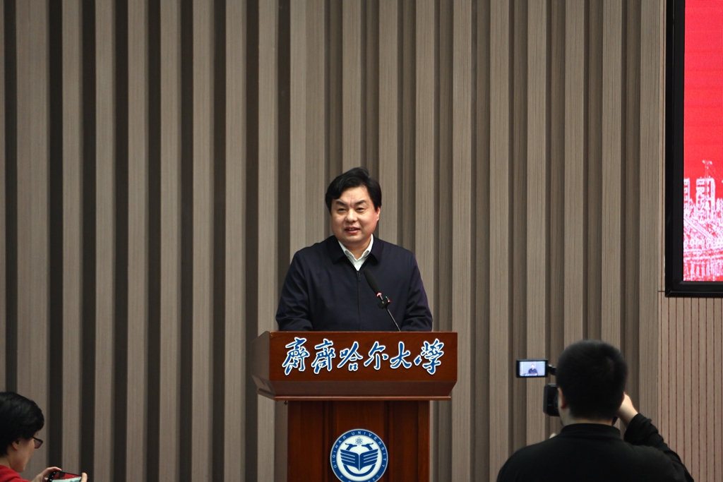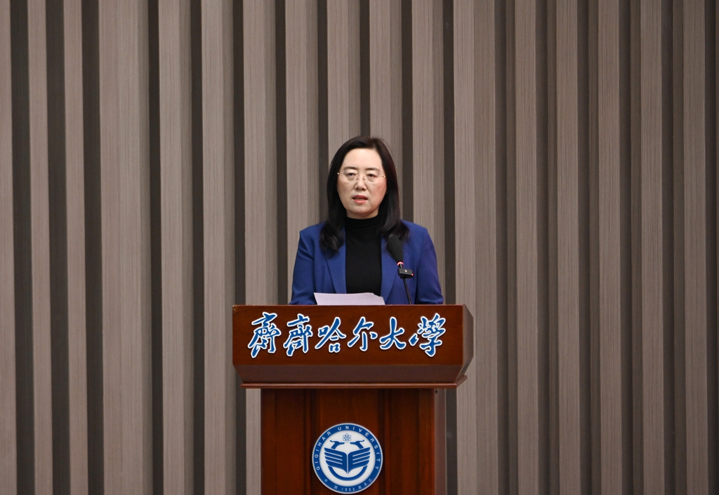 丁宏在致辞中表示,在全省率先发起成立“党建引领大中小学思想政治教育一体化建设联盟”,是贯彻落实党的二十届三中全会和全国、全省教育大会精神的具体举措和实际行动,是我们校地之间合作推进大中小学思想政治教育一体化建设双向奔赴的共赢之举和创新之举。我校将着力在“强体系、抓统筹、循规律、促衔接”上下功夫,与齐齐哈尔市共同推动大中小学思想政治教育一体化建设取得实绩和实效。一是共同构建“党建引领”大思政育人新生态;二是共同打造“1+N”模式一体化育人协同链;三是共同建设“校地联动”一体化育人合作群。她指出,推进大中小学思想政治教育一体化建设是党中央和习近平总书记赋予新时代学校的重要政治任务,使命光荣、责任重大。面向未来,我校将与联盟各成员单位携手打造大中小学思想政治教育一体化建设的“区域样本”,为构建一体化建设的“龙江范本”贡献力量,引领带动更多学校合力推动“大中小学思想政治教育一体化建设”,为龙江高质量发展、可持续振兴作出新贡献。