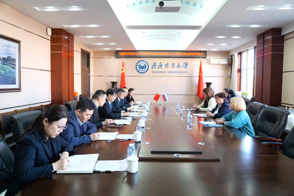 俄罗斯莫斯科州国立人文技术大学副校长叶郭洛娃·卡丽娜·维克多洛夫娜对我校的热情接待表示衷心感谢!她简要介绍了学校的概况、优势学科等办学特点,并表达了与我校深化合作的意愿。她表示双方可以利用各自的学科优势,尤其是在教师教育与制药领域可以实现优势互补,产出更有质量、更有水平的标志性成果,并推动双方在更高层次、更宽领域开展交流合作。