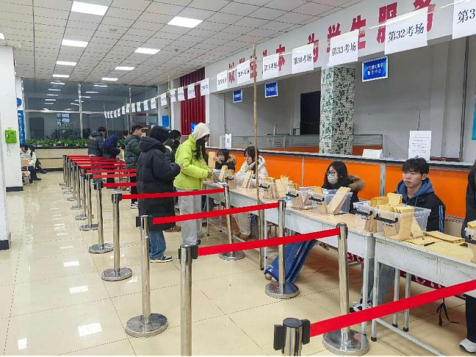 为进一步防范手机及新型智能产品作弊,确保考试安全,按照上级要求,学校全面落实配置智能安检门、实现5G屏蔽全覆盖、手机等智能设备不带入考点封闭区域等政策要求。学校在就业指导中心服务大厅、体育馆等大型场所设置了手机存放处及考前临时休息区域,方便考生存取手机,100余名学生志愿者尽职尽责,为考生提供周到的服务,为考生安心考试提供保障。