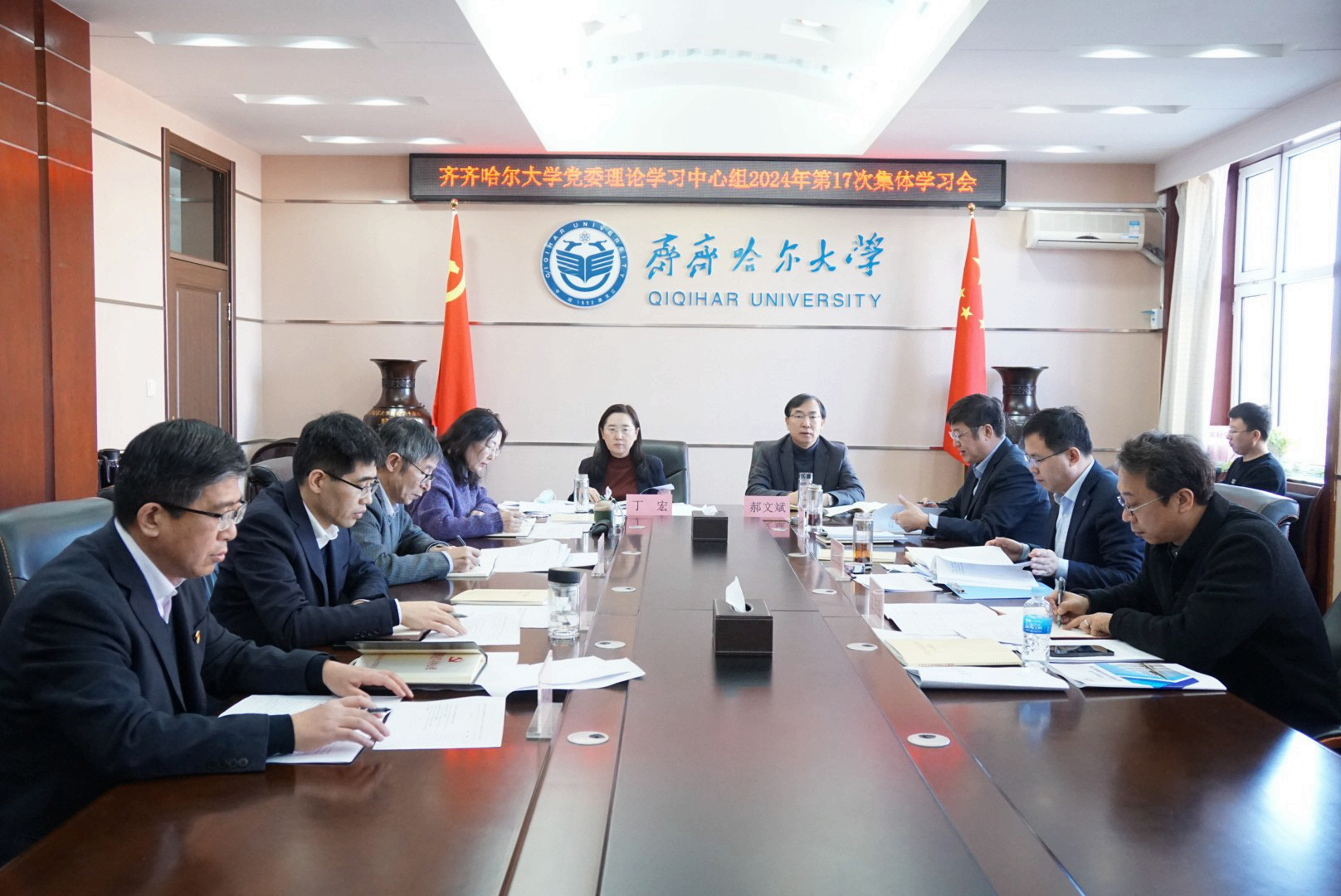 12月25日下午,学校党委理论学习中心组在办公楼504会议室召开2024年第17次集体学习(扩大)会,专题学习习近平总书记关于推动高质量发展的重要论述。校党委书记丁宏主持会议并讲话。学校党委理论学习中心组全体成员参加学习会。