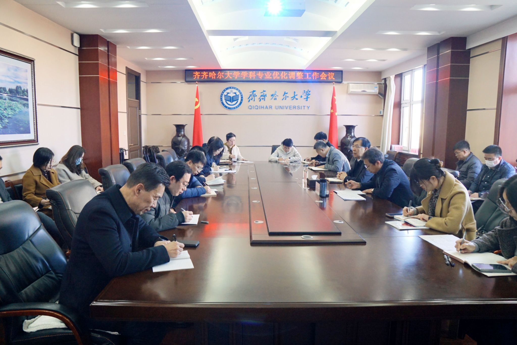 会上,范铁明传达了黑龙江省教育厅关于专业结构优化调整的文件精神,进一步明确了省属本科高校学科专业设置调整优化改革工作目标要求,介绍了我校专业结构调整现状与进展。范铁明结合黑龙江省高等教育2025年工作部署会议精神,强调以优化学科专业建设体系为主线,加大学科专业优化调整力度。他指出,一是全校上下要高度统一思想,充分认识到学科专业优化调整工作的全局性和系统性,做好顶层设计,查找差距,补齐短板,通过专业优化调整,进一步凝练和打造办学特色,找准办学定位,明确办学方向;二是各学院要提高政治站位,充分认识到专业优化调整的重要性和紧迫性,以本次专业优化调整为契机,科学谋划学院专业布局,升级改造国家级、省级一流本科专业,加强内涵建设,对现有存量专业作出提质增效、“关、停、并、转”的历史选择,加快速度开展专业优化调整工作。