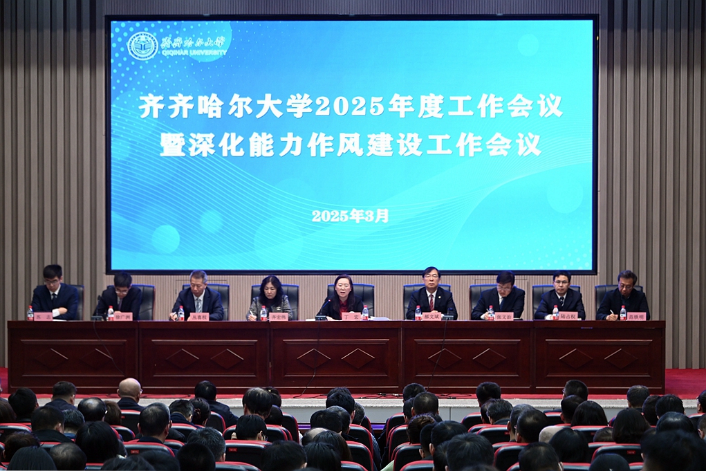 郝文斌强调,当前,学校发展面临着在应对时代变局中赢得战略主动、在把握科教融合发展态势中赢得未来、在构建高等教育体系中追求自强卓越、在建设应用型大学中彰显优势特色等形势和任务。我们应当深刻认识到教育强国对高等教育的定位、布局和要求,坚持目标导向、问题导向和结果导向,主动衔接重大战略需求,推动形成教育、科技、人才一体推进的集聚效应、倍增效应。2025年是“十四五”规划的收官之年,也是“十五五”规划的谋篇布局之年。我们要深入贯彻落实习近平总书记关于教育的重要论述,切实贯彻党中央决策部署和省委工作要求,更好凝聚推动学校发展的强大合力,深化学校综合改革,推进落实“十四五”规划目标任务,加强党对学校全面领导,构建“大思政”协同育人格局,持续深化教育教学改革,推动科研工作提质增效,发挥特色学科引领作用,深化人事人才制度改革,创新推进对内对外开放办学,切实提升学校治理效能,完善大安全工作体系,为实现“十五五”良好开局打牢基础,全力推动学校内涵建设和高质量发展,为助力龙江高质量发展、可持续振兴贡献力量!