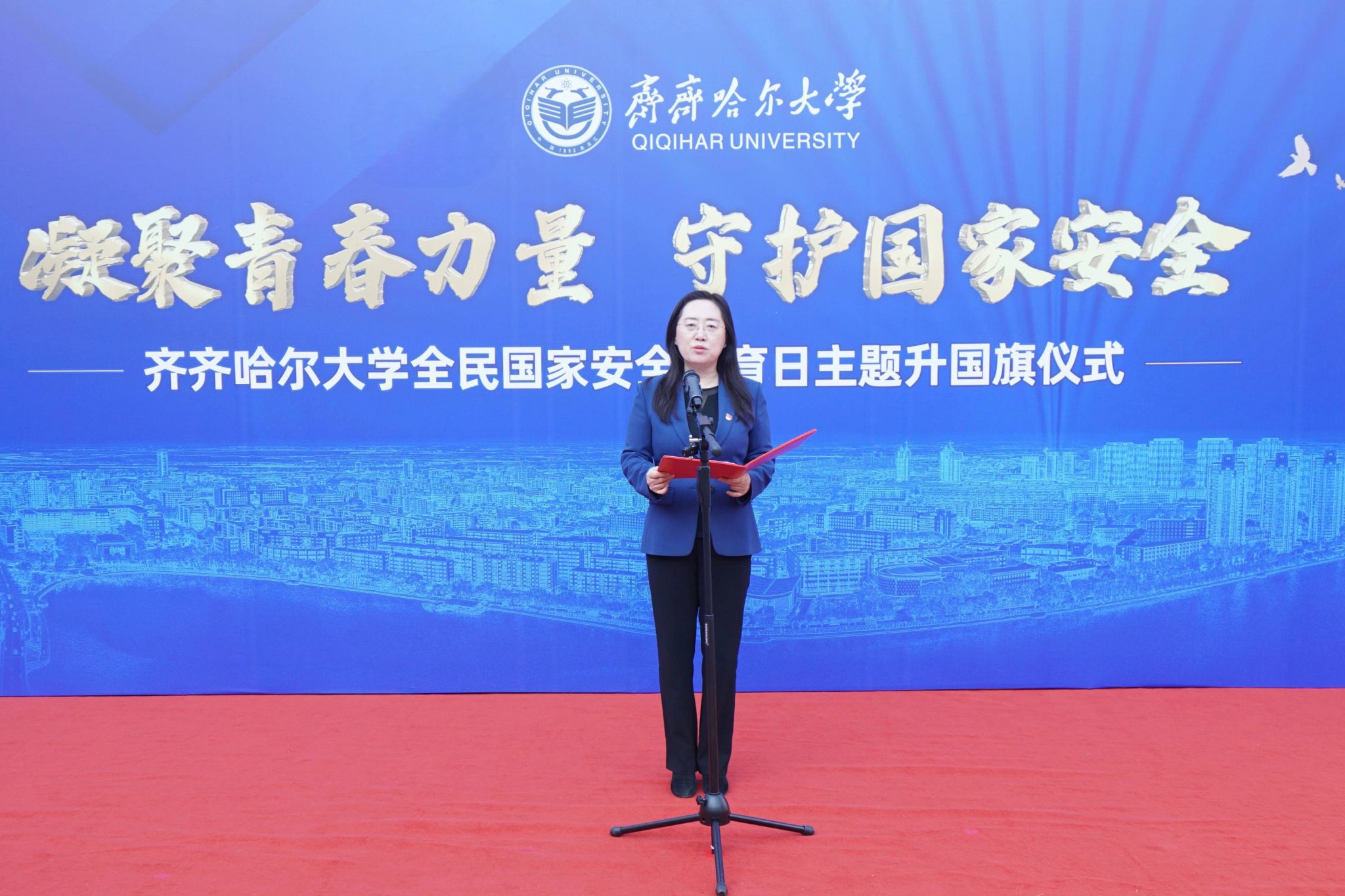 早7时,升国旗仪式正式开始。在雄壮的国歌声中,鲜艳的五星红旗冉冉升起。校党委书记丁宏以“凝聚全员力量、守护国家安全”为题,主讲“国旗下的第一课”。她指出,国家安全是安邦定国的重要基石,当前国际形势复杂多变,高校作为人才培养和科技创新的前沿阵地,肩负着维护国家安全的重要职责。全校干部师生要做国家安全的维护者、践行者、宣传者,牢固树立法治观念,深入学习《国家安全法》《网络安全法》等法律法规,从思想上、行动上筑牢国家安全防线,争当国家安全守护者。