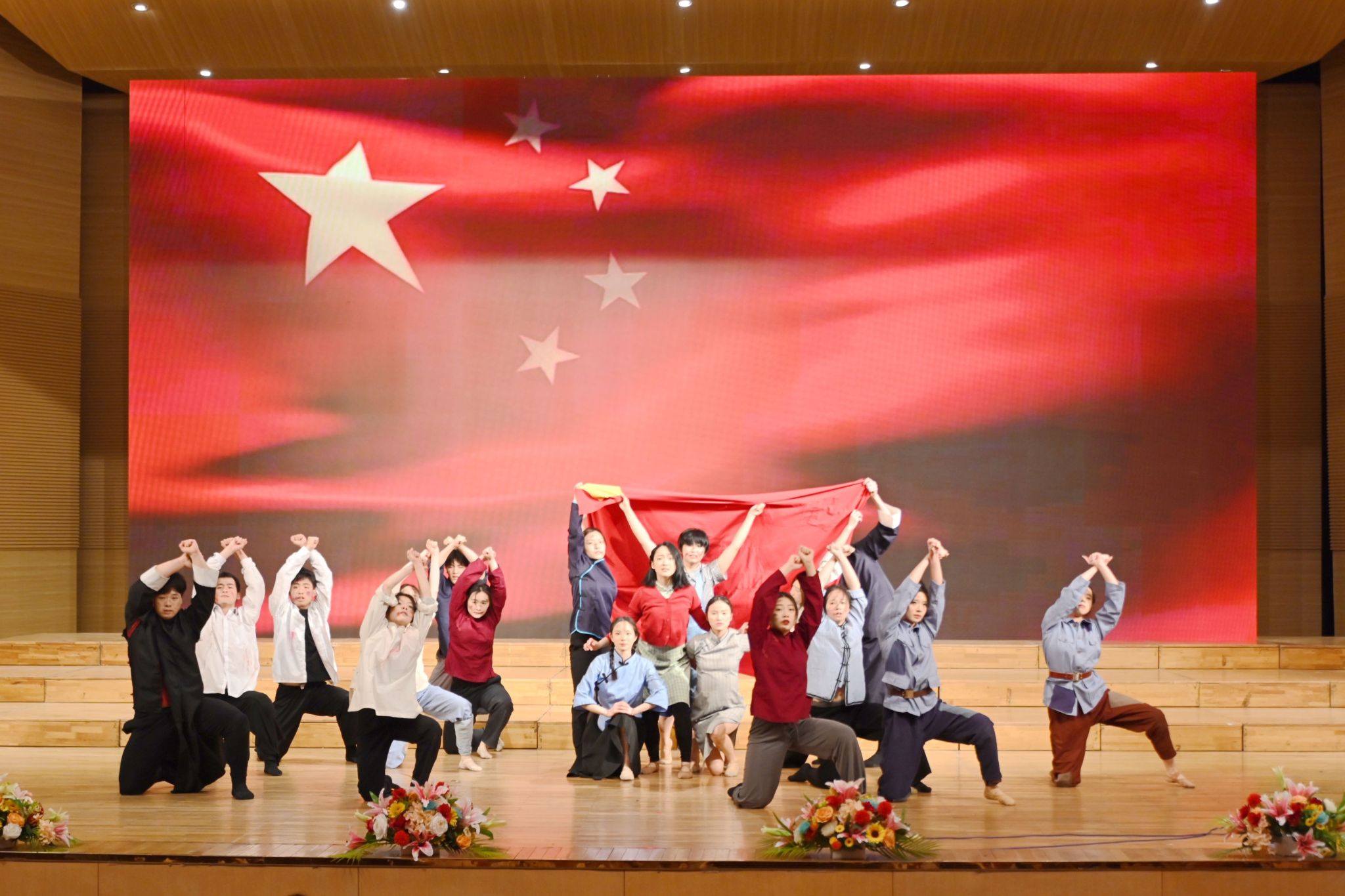 本场活动共分三个单元。在“传承·薪火——致敬百年五四精神”单元中,校舞蹈团的同学们以舞蹈《烈火中永生》拉开序幕,通过艺术形式再现革命先辈的奋斗精神,现场观众在光影交错中感受五四精神的薪火相传。校青年宣讲团的同学们以音诗画表演《如愿》,带领观众穿越时空,感受历史与青春的碰撞,见证梦想与奋斗的交融,展现出齐大学子传承五四薪火的生动图景。