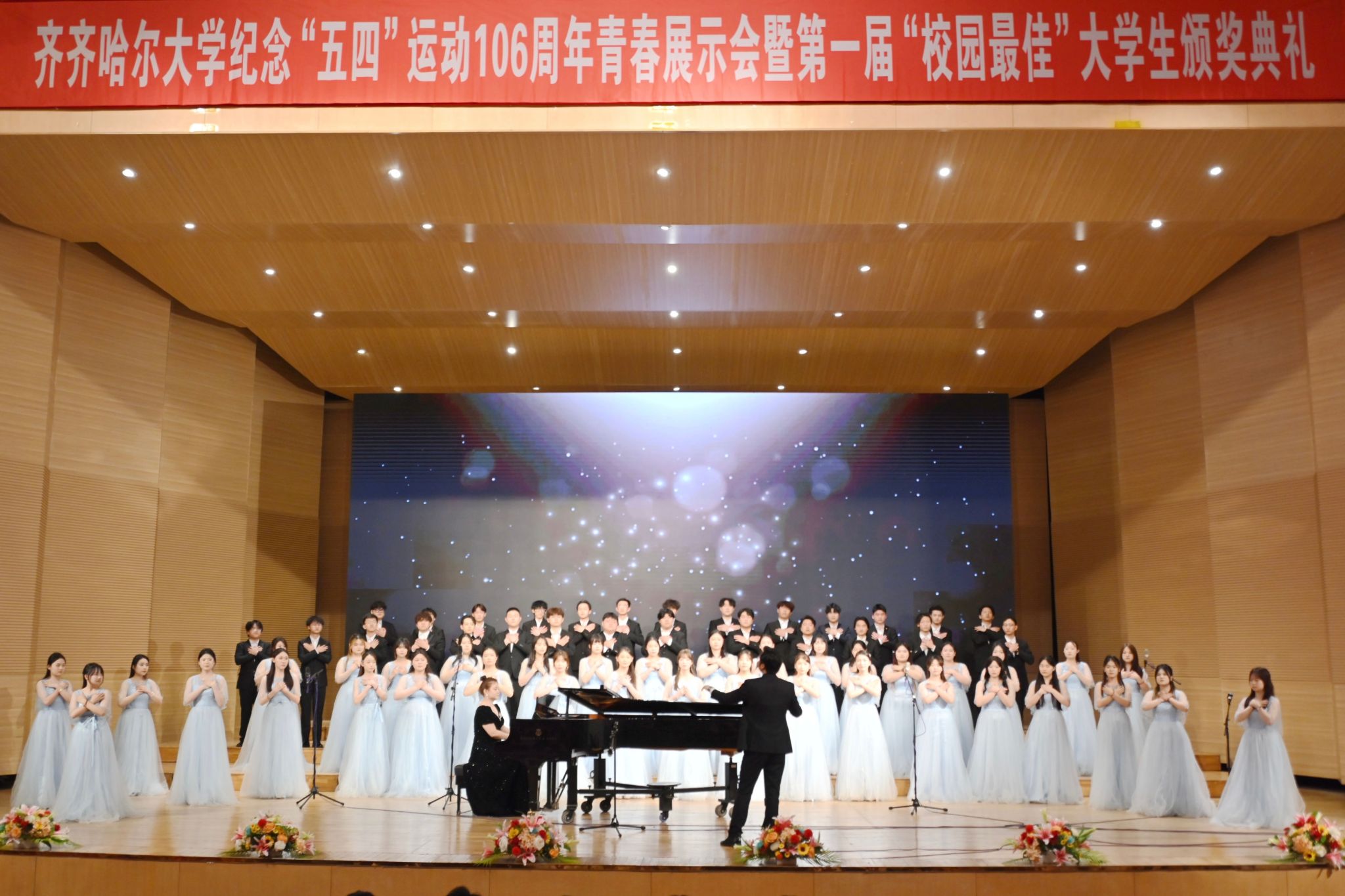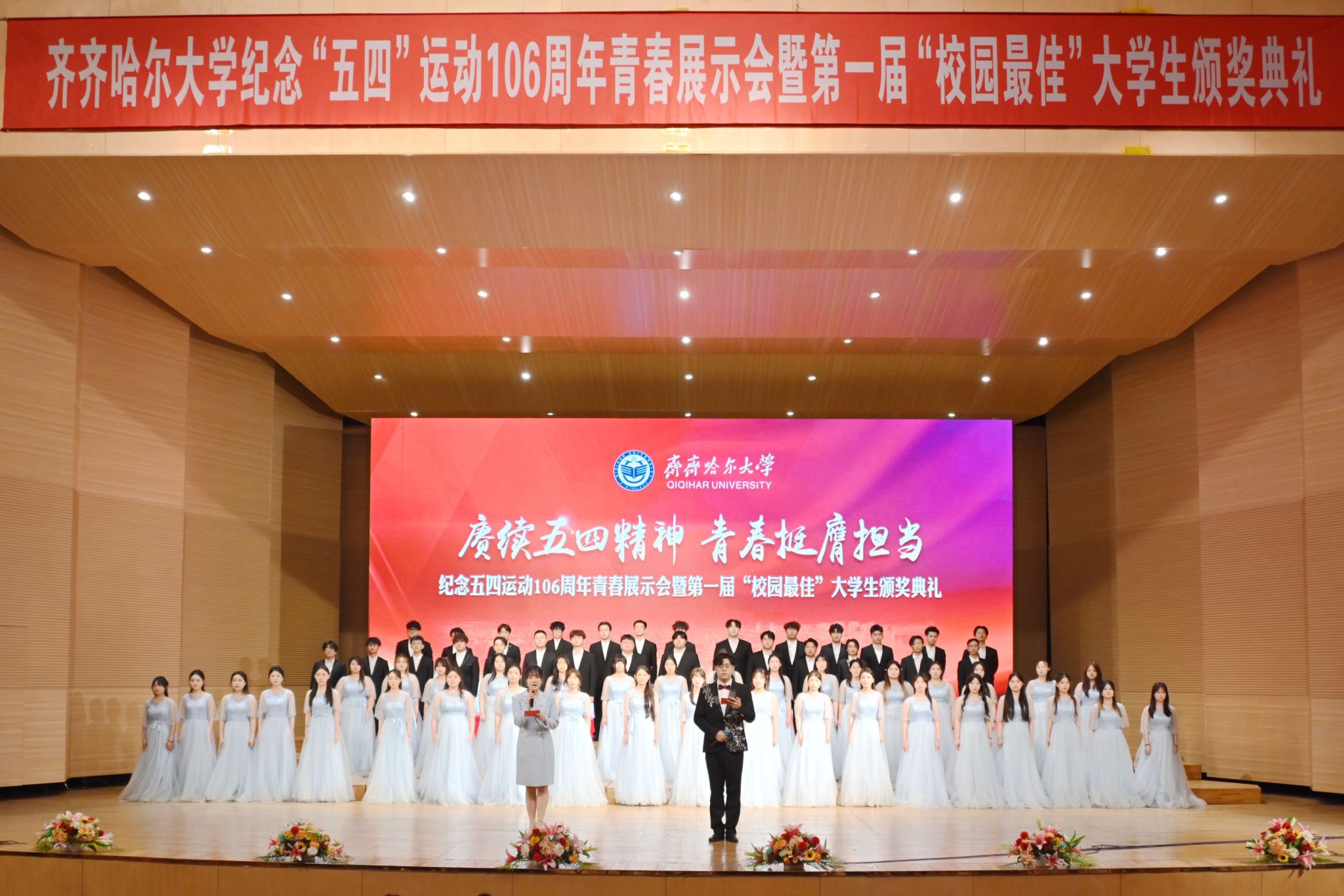 在“奋斗·青春——礼赞齐大榜样力量”单元中,活动现场揭晓了第一届“校园最佳”大学生奖项,校领导分别为41名获奖学子颁发奖杯和鲜花,表彰他们在道德风尚、自强不息、专业学习、科技创新、体育拼搏、社会实践、文艺贡献、宣传推广、团学工作、创业实践等十个领域的优秀表现。