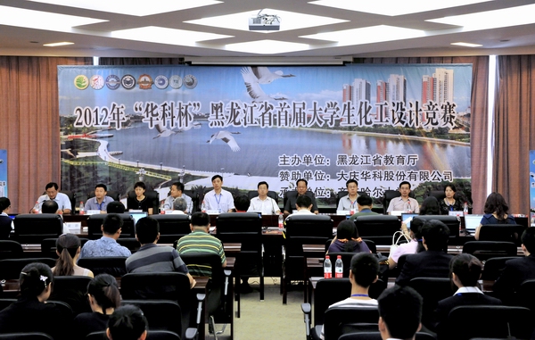 2012年“华科杯”黑龙江省首届大学生化工设计竞赛是在教育部高等教育司指导下,由黑龙江省教育厅主办,大庆华科股份有限公司赞助,省内哈尔滨工业大学、哈尔滨工程大学、齐齐哈尔大学、黑龙江大学、东北石油大学、哈尔滨理工大学、大庆师范学院、黑龙江科技学院8所院校联合发起,齐齐哈尔大学承办的一项重要的大学生竞赛活动。旨在不断深化教育教学改革,多种途径培养大学生的创新思维和工程技能,培养团队协作精神,增强大学生的化工工程设计能力,向社会展示高等院校对化工类人才教育与时俱进的面貌,搭建高校化工工程素质教育成果与经验的交流平台,为国家和黑龙江省地区经济发展提供智力支持和人才保证。