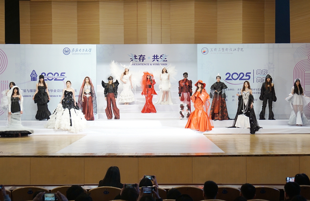 服装与服饰设计专业进行了题为“共存﹒共生”的毕业设计作品展演。舞台走秀异彩纷呈,涵盖了“少数民族服饰设计”“冰雪服饰创意设计”“可持续概念创意服饰设计”等单元,为师生们呈现了一场美轮美奂的视觉盛宴,体现了我校以艺术创作铸牢中华民族共同体意识和以“大艺术”理念高效推动美育工作发展的目标与实践。