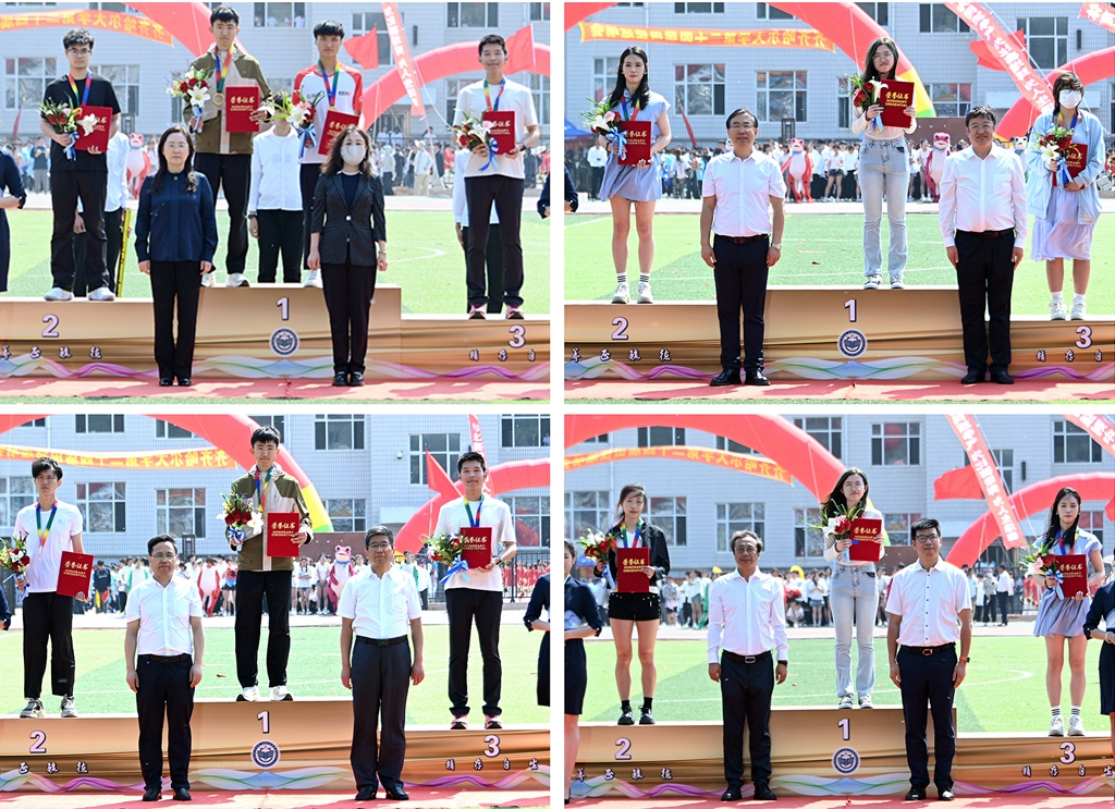 校领导作为颁奖嘉宾,分别为开幕式前举行的男子一万米、女子五千米等项目获得者颁奖,并环场一周慰问师生,送上鼓励与关怀。