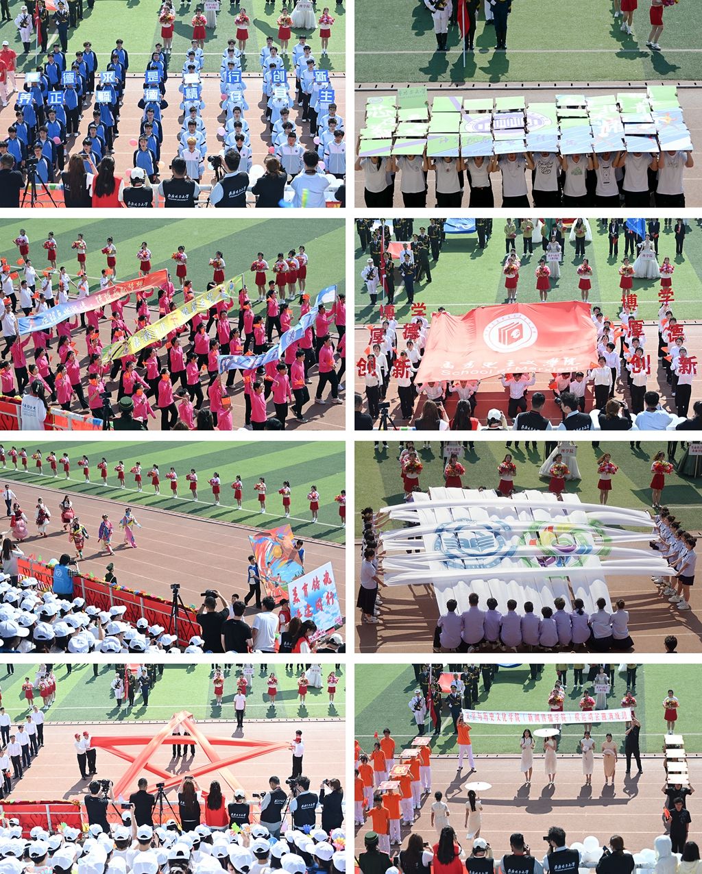 在激昂的《运动员进行曲》和热烈的掌声中,前导队、裁判员方阵、各学院代表队、退役大学生代表队、各民族学生代表队依次入场,接受大会检阅。他们步伐整齐、英姿勃发、口号响亮,充分展现我校师生昂扬向上、奋勇拼搏的精神风貌!伴随着庄严的国歌声,鲜艳的五星红旗在国旗队的护卫下冉冉升起,全场师生肃立行注目礼。