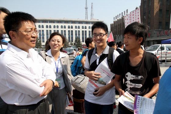 学校在火车站设立了接站点,提供了免费的接站专车,学生处组织校学生自律会的同学轮流到火车站迎接入学新生及家长。来自各省市的新生及家长还未走出齐齐哈尔火车站的站台,就能看见学校接站的旗帜和欢迎新生的师生。