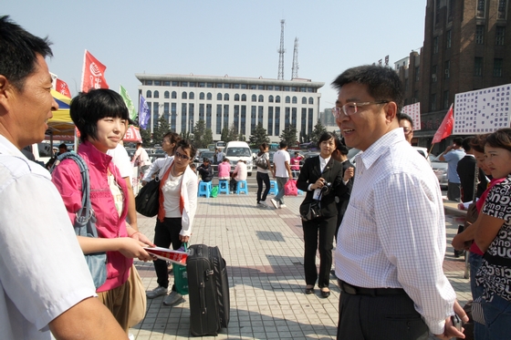 校党委书记李海红一大早就来到齐齐哈尔火车站迎新接站点,看望慰问工作师生,并与刚下火车的新生及家长亲切交谈。李海红对他们表示热烈欢迎,他介绍了接待工作相关情况,认真了解家长的想法及要求,并请家长放心,学校将全力做好各项工作,为孩子的成长成才提供条件。