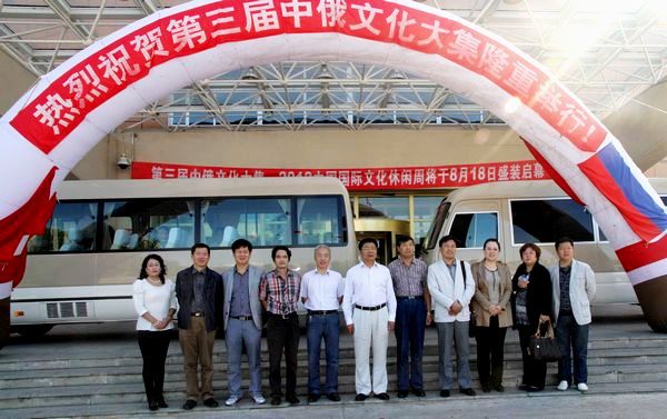 8月23-24日,校党委书记李海红率团赴黑河参加第三届中俄文化大集。校党委宣传部部长田志峰、社科处处长王晓梅、马克思主义学院院长何春岐、文学与历史文化学院院长王则远、美术与艺术设计学院院长马振庆、经济与管理学院院长王维、轻工与纺织学院院长赵欣、外国语学院院长张坤、大学英语教研部主任马冬、社科处副处长伊全胜、党办校办主任助理耿春明等参加了考察活动。