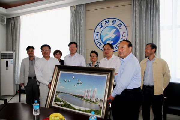 我校代表团一行受到黑河学院党政领导的热情迎接与盛情接待。黑河学院党委书记曲伟建、院长贯昌福等党政领导全程陪同考察。