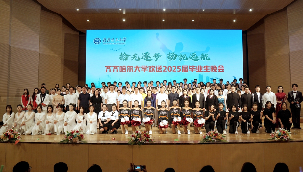 晚会在铿锵激昂的鼓点声中拉开了序幕。演出以“启航:青春初绽,齐大梦起”“助航:齐大情深,温暖同行”“远航:逐梦齐大,扬帆远行”3个篇章共同编织起毕业生在齐大的青春旅程,见证他们的成长蜕变,激励他们带着母校的祝福奔赴未来。