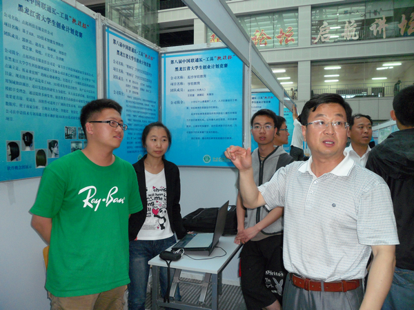 在作品展台前,各参赛队员认真讲解自己的参赛作品,耐心的解答观摩的领导老师提出的每一个问题。黑龙江省委副秘书长张伟,共青团黑龙江省委书记李豪岩来到我校的展位前观看,对于我校的参赛工作和参赛作品给予了充分肯定。