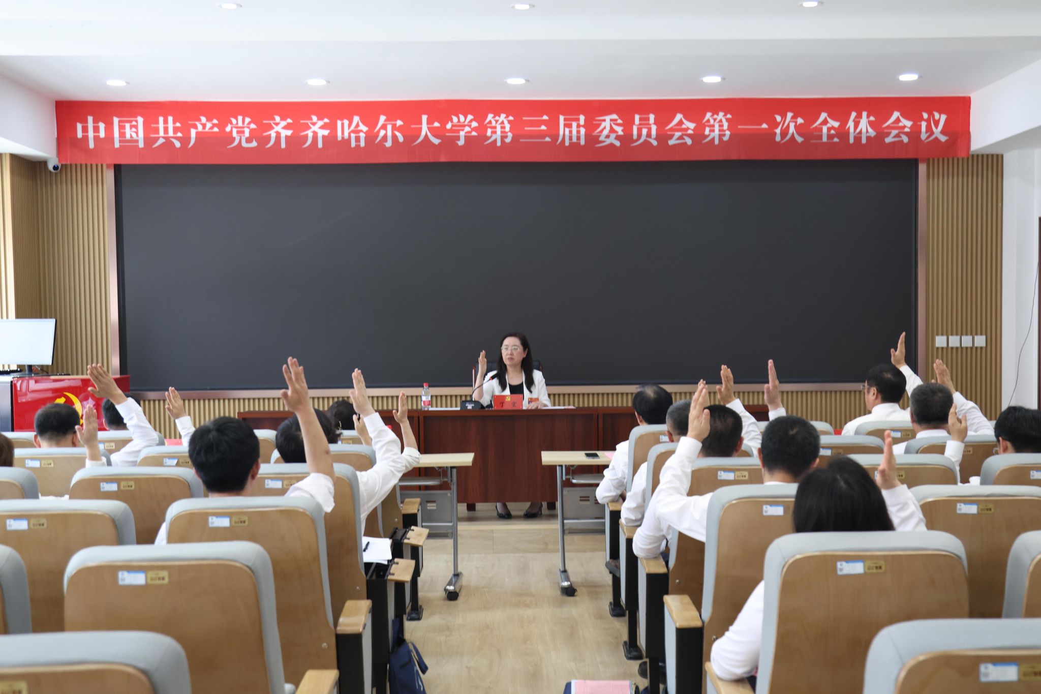 闭幕会后,在中国共产党齐齐哈尔大学第三届委员会第一次全体会议上,选举产生了中国共产党齐齐哈尔大学第三届委员会常务委员会委员和书记、副书记。丁宏当选书记,郝文斌、齐宏伟、张文治当选副书记。