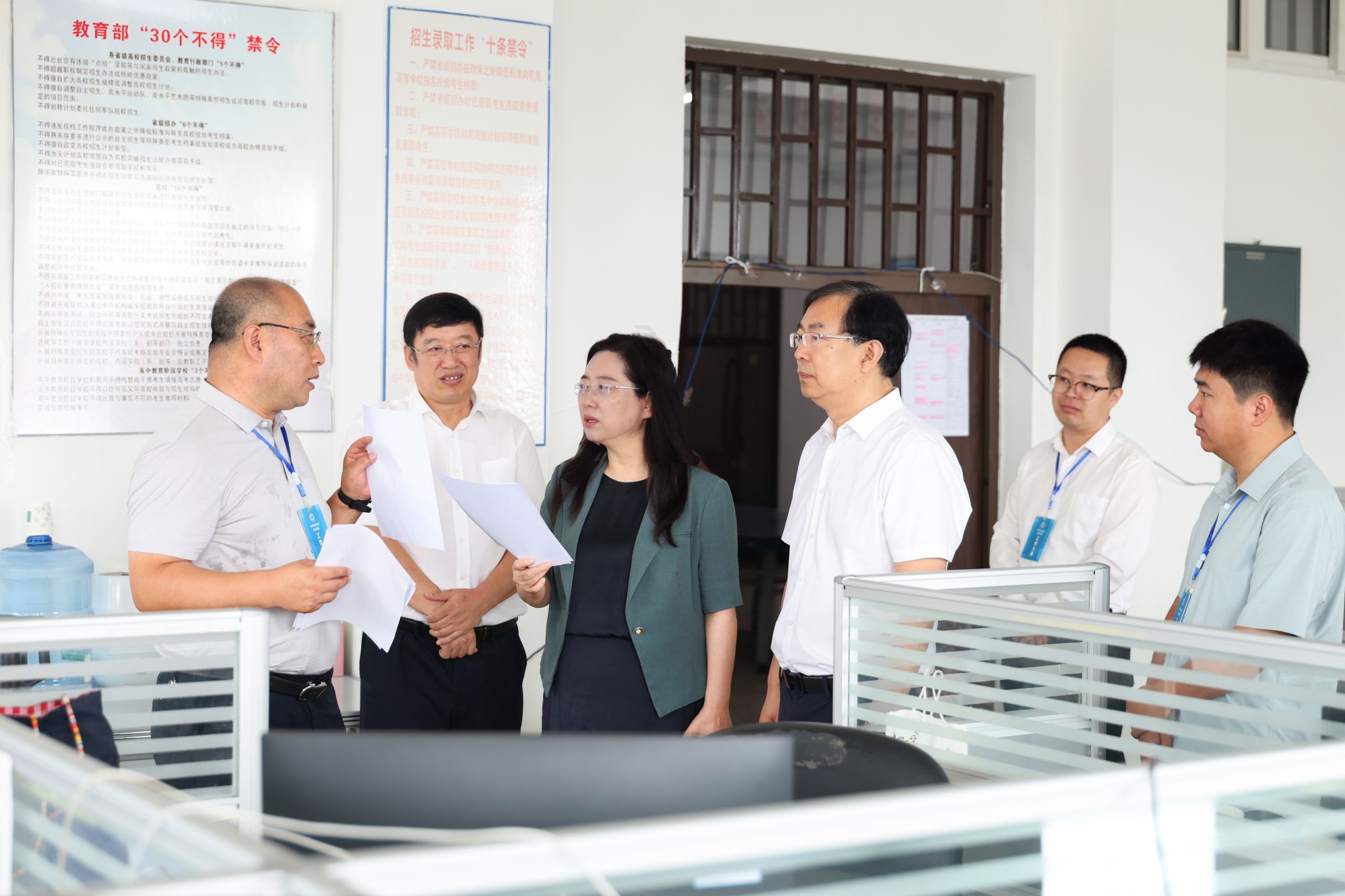 7月17日上午,学校党委书记丁宏,校长、党委副书记郝文斌,党委副书记张文治,深入学校本科招生录取现场调研指导2025年招生录取工作,并亲切慰问招生录取工作人员。