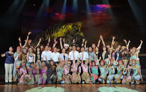 演出结束后,省、市、校领导与演职人员一起合影留念。
