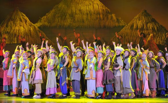 7月1日晚,我校师生参与制作并演出的大型风情音画歌舞剧《达斡尔人》在省城哈尔滨环球剧场举办汇报演出,为观众呈现了一幅震撼的民族风情画卷。当晚,哈尔滨环球剧院灯火璀璨,气氛热烈,容纳1600人的剧场座无虚席。