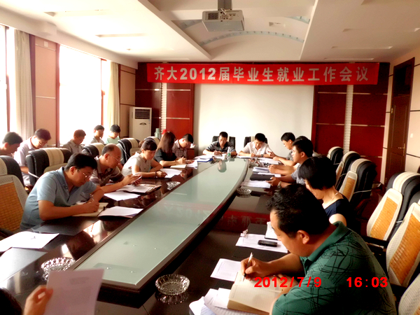 7月9日,学校在机关楼504会议室召开2012届毕业生就业工作会议。常务副校长郑喜群主持会议并讲话。学生指导中心主任杨国志、各学院主管学生就业工作副书记、副院长参加了会议。